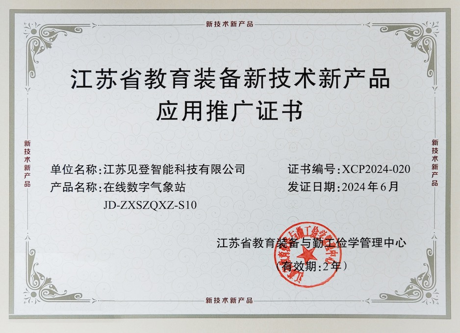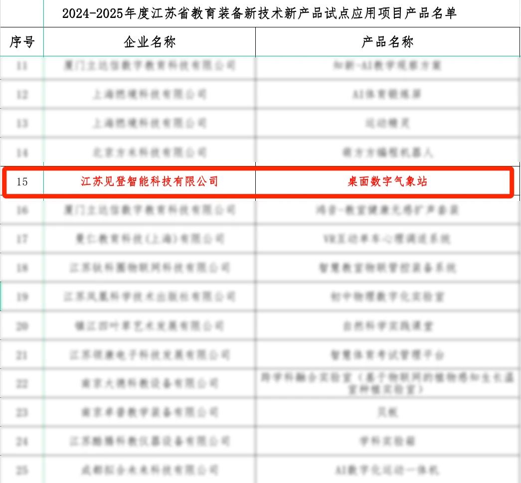 “桌面数字气象站”成功入选 《2024-2025年度江苏省教育装备新技术新产品试点应用项目产品名单》。